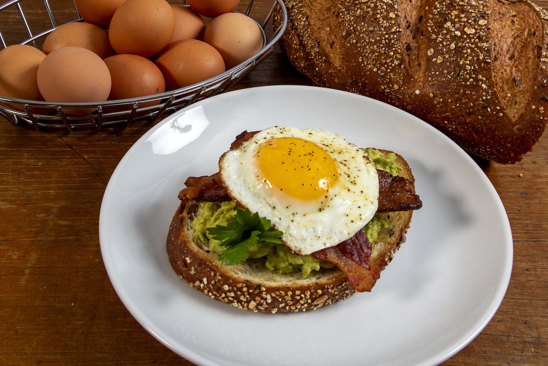 In a small mixing bowl, add the Florida avocado, mayonnaise and seasoning blend. Use a fork to smash the mixture until desired consistency is reached. Evenly spread the mixture over each piece of bread. Evenly top each toast with 2 pieces of bacon.