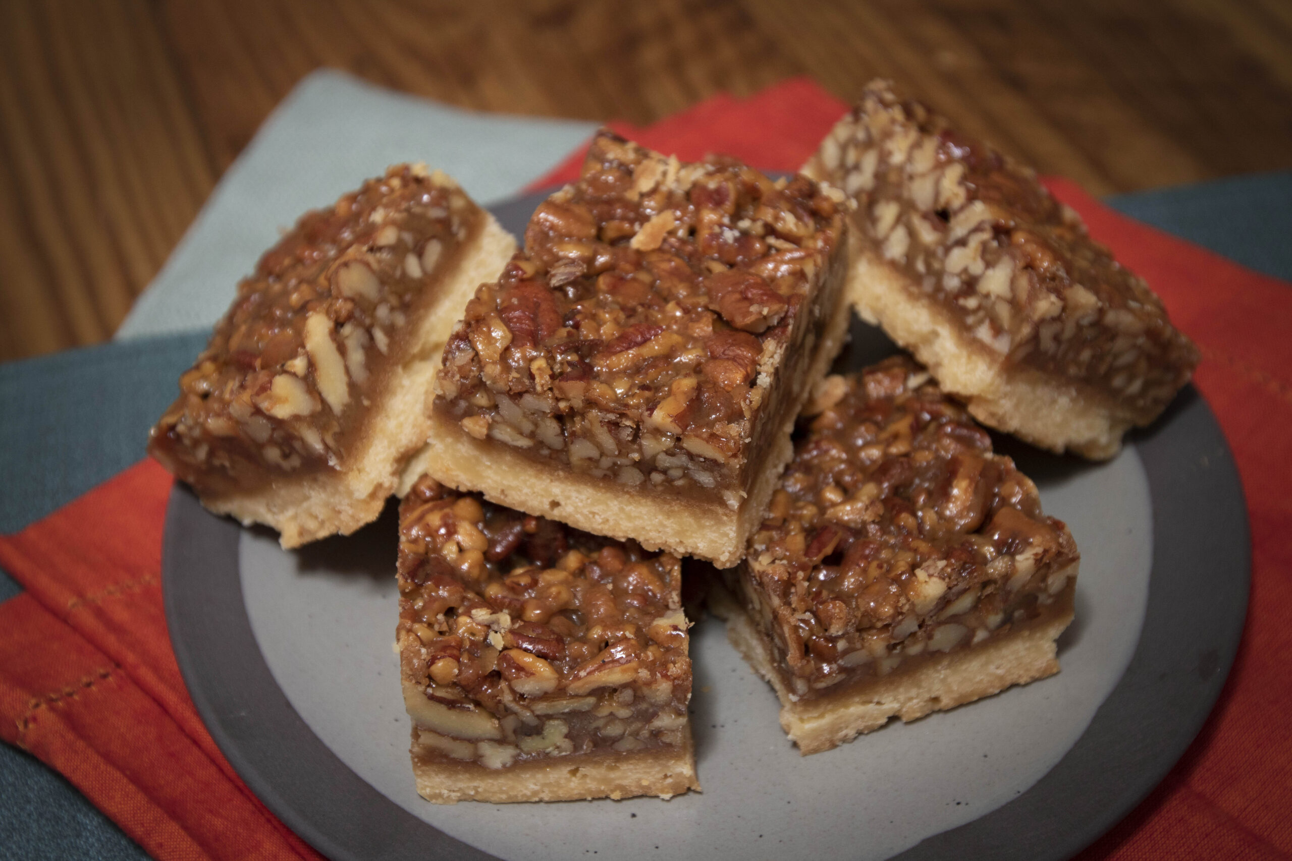 For the topping, combine butter, honey, brown sugar and zest in a heavy-bottomed saucepan. Cook over low heat until butter is melted. Once the butter is melted, raise the heat and boil for 3 minutes. Remove from heat and carefully stir in heavy cream and pecans. Gently pour over crust. Bake for 25 to 30 minutes or until the filling is set.