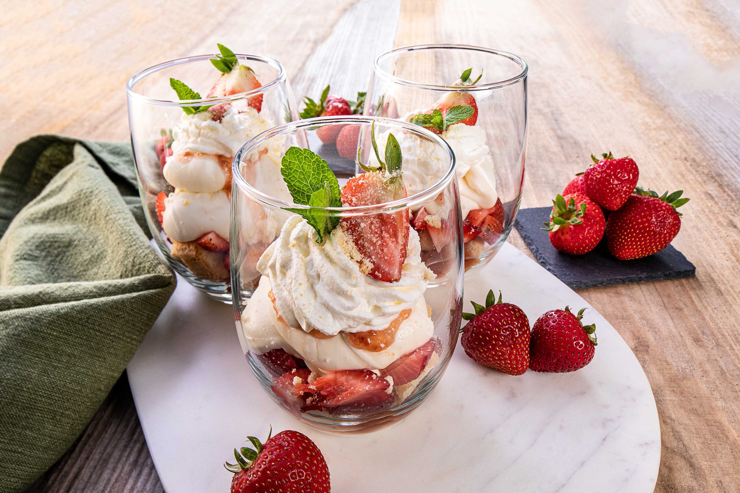 In a large bowl, combine softened mascarpone, sugar and honey and mix thoroughly. In a separate bowl, whisk heavy cream and vanilla until stiff peaks form. Gently fold heavy cream mixture into the mascarpone mixture. Use individual bowls or small dessert dishes to serve. Place sliced strawberries in the bottom of the dish, followed by a dollop of preserves. Next, add crumbled lady fingers, then a dollop of the mascarpone mixture. Continue layering. Store in refrigerator until ready to serve.