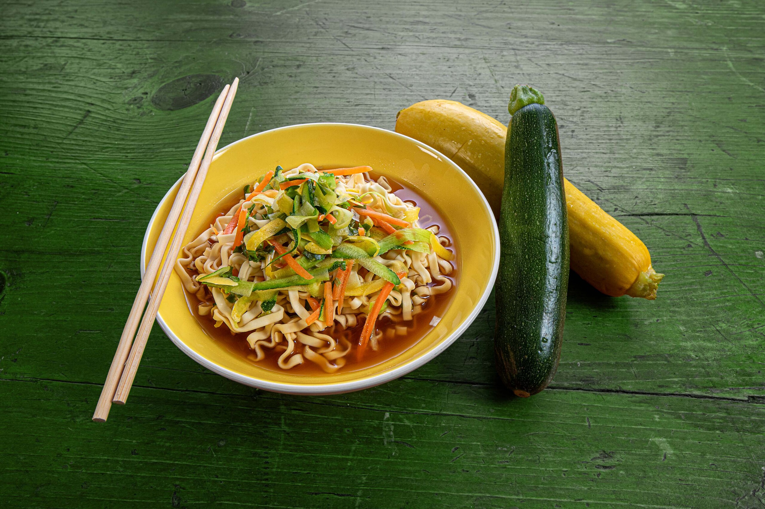 Bring about 2 cups of water to a boil, then add shredded carrots and dried ramen noodles. Cook noodles for 2 minutes and add the shredded Florida yellow squash and zucchini. Cook for another minute or 2, depending on desired texture of the noodles. Remove from heat and add seasoning packet, to taste. Let cool slightly and serve hot.